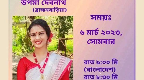 উপমা এ বছর বাংলাদেশ গ্যাসফিল্ড স্কুল অ্যান্ড কলেজে দ্বাদশ শ্রেণীতে (বিজ্ঞান বিভাগে)লেখাপড়া করছে। সে আজ সোনার তরীর নানা রঙের গানের আসরে গান শোনাবে। সকলে আমন্ত্রিত।