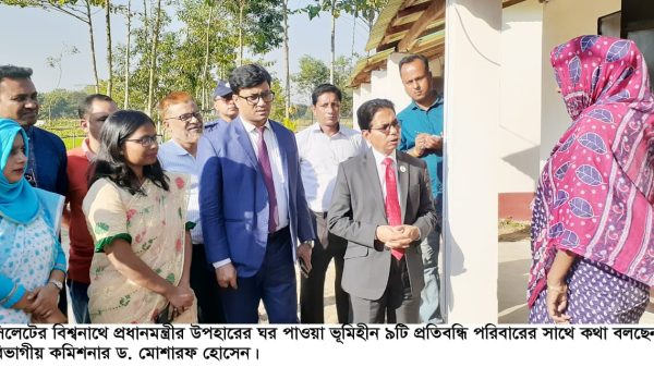 জাতির জনক বঙ্গবন্ধু শেখ মুজিবুর রহমানের তনয়া বাংলার সফল প্রধানমন্ত্রী শেখ হাসিনা’র পক্ষ থেকে ‘জায়গা ক্রয় করে, নতুন ঘর বানিয়ে দিয়ে’ সিলেটের বিশ্বনাথ উপজেলার ৯টি গৃহহীন-ভ‚মিহীন প্রতিবন্ধি পরিবারকে দেওয়া হয়েছে উপহারের ঘর। প্রধানমন্ত্রীর দেওয়া উপহারের ঘরে ‘আপন ঠিকানা’ পেয়েছে ওই ৯টি সর্বহারা পরিবার।