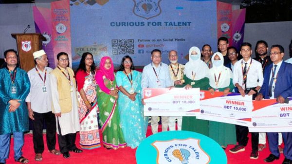 সিলেটের বিশ্বনাথ উপজেলার ‘সার্সিং মেরিটস’ স্লোগানকে সামনে রেখে শিক্ষা মানোন্নয়নের পাশাপাশি মেধা অন্বেষণের লক্ষ্যে ‘কিউরিয়াস ফর ট্যালেন্ট’র উদ্যোগে মাধ্যমিক পর্যায়ের স্কুল শিক্ষার্থীদের নিয়ে প্রথমবারের মতো অনুষ্ঠিত ‘উপজেলা আন্তঃ বিদ্যালয় বিতর্ক প্রতিযোগিতা’য় চ্যাম্পিয়ন হয়েছে রামপাশা ইউনিয়নের একলিমিয়া দ্বিপাক্ষিক উচ্চ বিদ্যালয়।শুক্রবার (১০ মার্চ) বিকেলে উপজেলা পরিষদ মাঠে আয়োজিত গ্রান্ড ফাইনালে ‘মূল্যবোধ ও দেশপ্রেমের অভাবেই দুর্নীতির বিস্তার ঘটে’-এ বিষয়ের পক্ষে বিতর্কে অংশ নিয়ে বিপক্ষ দল অলংকারী ইউনিয়নের আলহাজ্ব তাহির উচ্চ বিদ্যালয়কে হারিয়ে চ্যাম্পিয়ন হয় তারা। শ্রেষ্ঠ বক্তা নির্বাচিত হন বিজয়ী পক্ষের দলনেতা আলিয়া আক্তার নার্গিস।ফাইনালে মডারেটরের দায়িত্ব পালন করেন বালাগঞ্জ সরকারি কলেজের অধ্যক্ষ লিয়াকত শাহ ফরিদী। বিচারকের দায়িত্ব পালন করেন রাগীব-রাবেয়া ডিগ্রি কলেজের সহকারী অধ্যাপক কবি খালেদ উদ-দীন, নুরজাহান মেমোরিয়াল মহিলা ডিগ্রি কলেজের সহকারী অধ্যাপক আবদুল আজিজ, বুরুঙ্গা ইকবাল আহমদ উচ্চ বিদ্যালয় ও কলেজের সহকারী অধ্যাপক মো. শহিদুল ইসলাম।ফাইনাল শেষে কিউরিয়াস ফর ট্যালেন্ট’র সভাপতি অধ্যক্ষ নেছার আহমদের সভাপতিত্বে ও সদস্য প্রিন্সিপাল মণিকাঞ্চন চৌধুরীর সঞ্চালনায় অনুষ্ঠিত পুরস্কার বিতরণ অনুষ্ঠানে প্রধান অতিথির বক্তব্য রাখেন, সিলেট কৃষি বিশ্ববিদ্যালয়ের ভাইস চ্যান্সেলর অধ্যাপক ড. মো. জামাল উদ্দিন ভূইয়া।বক্তব্যে তিনি বলেন, ‘মেধা বিকাশে বিতর্ক প্রতিযোগিতার বিকল্প নেই। শুদ্ধ ও সুন্দর জীবন গঠনে সহায়তা করে বিতর্ক প্রতিযোগিতা। মেধা বিকাশে দেশের প্রতিটি উপজেলায় বিতর্ক প্রতিযোগিতার আয়োজন করা প্রয়োজন। অনুষ্ঠানে বিশেষ অতিথির বক্তব্য রাখেন, সিলেট জজ কোর্টের স্পেশাল পিপি অ্যাডভোকেট শাহ মোশাহিদ আলী, উপজেলা নির্বাহী কর্মকর্তা (ইউএনও) নুসরাত জাহান, কিউরিয়াস ফর ট্যালেন্ট’র প্রবর্তক যুক্তরাজ্য প্রবাসী মোহাম্মদ আলী মজনু, বিশ্বনাথ ইউনিয়ন পরিষদের চেয়ারম্যান ছয়ফুল হক। স্বাগত বক্তব্য রাখেন কিউরিয়াস ফর ট্যালেন্ট’র সাধারণ সম্পাদক আবদুল মুমিন মামুন।