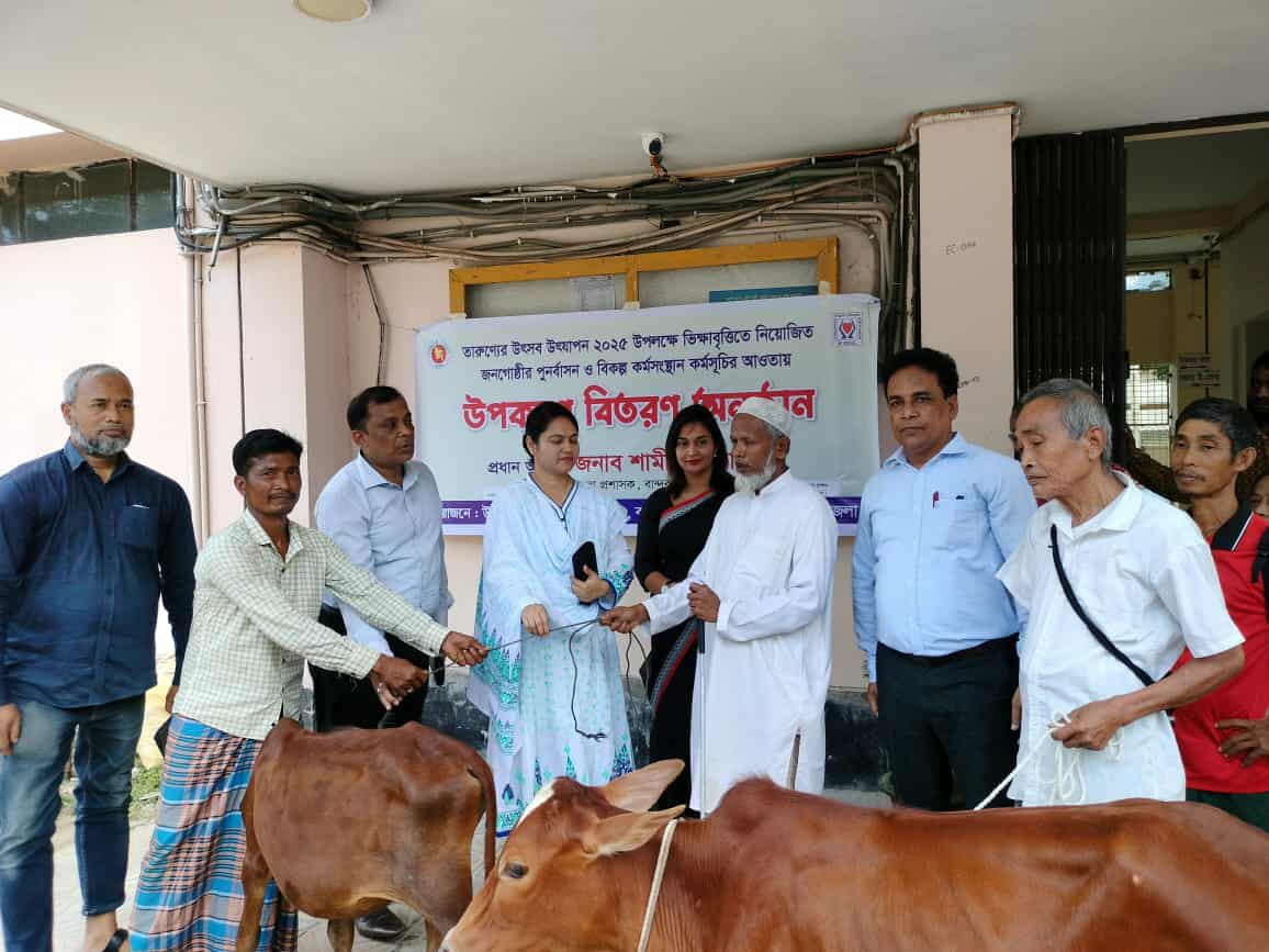 এসময় জেলা প্রশাসক ভিক্ষুকদের ভিক্ষাবৃত্তি পরিহার করে নতুন কর্মসংস্থানের লক্ষ্যে কয়েকজন ভিক্ষুককে গাভী বিতরণ করেন।
