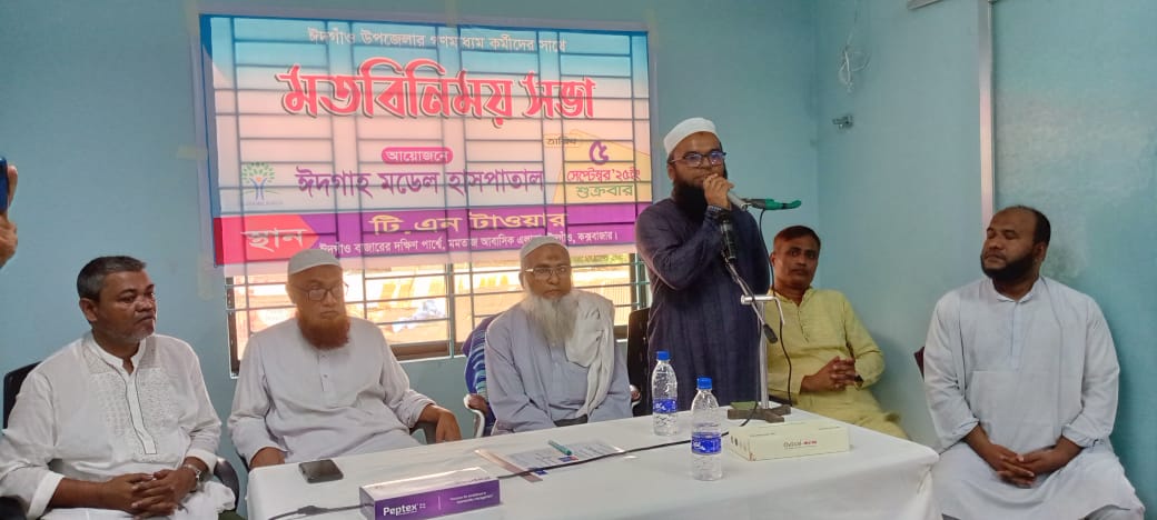 ৫ সেপ্টেম্বর বাদে জুমা নবনির্মিত হাসপাতালের দ্বিতীয় তলায় হাসপাতালে অর্থ পরিচালক মাও: আবু বক্করের স্বাগত বক্তব্যের মাধ্যমে আলোচনা করেন ঈদগাহ মডেল হাসপাতালের ব্যবস্থাপনা পরিচালক ডাঃ মো: ইউসুফ আলী।