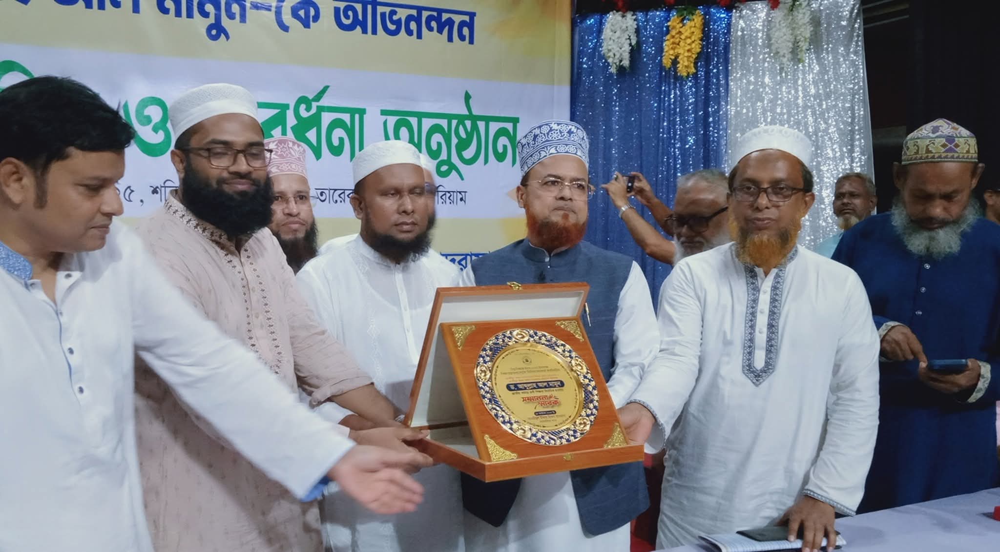 হিফয সমাপনী ও সবক প্রদান অনুষ্ঠানের পর বিশ্ব শিক্ষক দিবস -২০২৫ উপলক্ষে শিক্ষা মন্ত্রণালয় কর্তৃক দেশসেরা গুনী শিক্ষক নির্বাচিত হওয়ায় তানযীমূল উম্মাহ ফাউন্ডেশনের সিনিয়র ভাইস চেয়ারম্যান ও তানযীমূল উম্মাহ আলিম মাদরাসার প্রতিষ্ঠাতা প্রিন্সিপাল ড.আব্দুল্লাহ আল মামুনকে অভিনন্দন, শুকরিয়া ও সংবর্ধনা অনুষ্ঠান এডভোকেট তারেক স্মৃতি অডিটোরিয়ামেই বিকেলে অনুষ্ঠিত হয়েছে।
