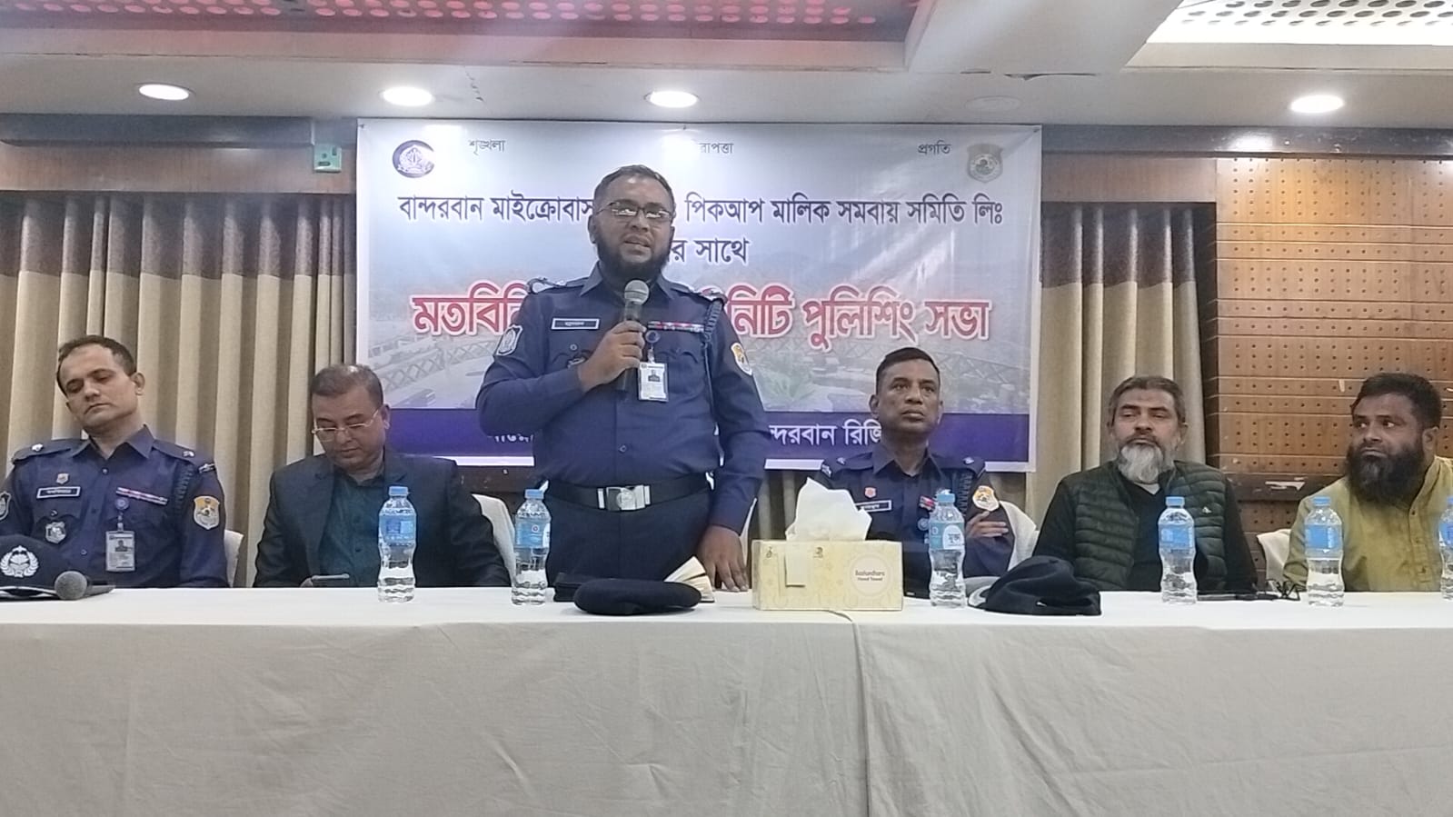 ট্যুরিস্ট পুলিশ বান্দরবান রিজিয়ন এর আয়োজনে পর্যটন সংশ্লিষ্ট বান্দরবান জীপ মাইক্রোবাস, ও পিকআপ মালিক সমবায় সমিতি লিঃএর সাথে মতবিনিময় ও কমিউনিটি পুলিশিং সভা বান্দরবান হোটেল হিলটন কনফারেন্স হল রুমে ২৬ নভেম্বর বুধবার সন্ধ্যা ৭টায় অনুষ্ঠিত হয়।