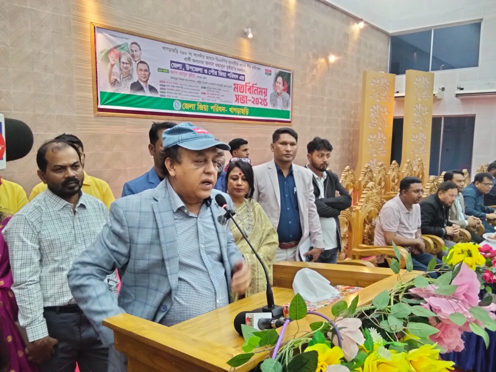 শনিবার ২৯ নভেম্বর বিকালে খাগড়াছড়ির পৌর টাউন হলে জেলা জিয়া পরিষদের সভাপতি মোঃ মোজাম্মেল হক এর সভাপতিত্ব ও সাধারণ সম্পাদক জাহিদ ইসলাম এর সঞ্চালনায় প্রধান অতিথি হিসেবে বক্তব্য রাখেন কেন্দ্রীয় বিএনপির কর্মসংস্থান বিষয়ক সহ-সম্পাদক ও খাগড়াছড়ি জেলা বিএনপির সভাপতি ওয়াদুদ ভূইয়া।