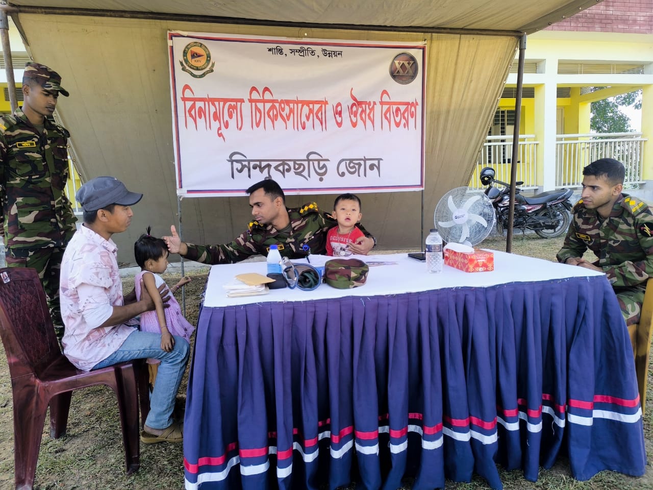খাগড়াছড়ির গুইমারা ২০ফিল্ড রেজিমেন্ট আর্টিলারী সিন্দুকছড়ি জোন কর্তৃক শান্তি চুক্তি দিবস উপলক্ষে গোয়াইছড়ি সরকারি প্রাথমিক বিদ্যালয় এর মাঠ প্রাঙ্গণে চিকিৎসা সেবা ও ঔষধ বিতরণ।