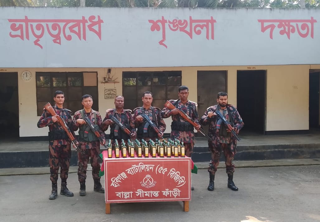 বিজিবি সূত্র মারফত জানা যায়, গোপন সংবাদের ভিত্তিতে ৫৫ বিজিবি হবিগঞ্জ জেলার চুনারুঘাট উপজেলার বাল্লা বিওপির দায়িত্বপূর্ণ সীমান্ত এলাকা দিয়ে অবৈধভাবে ভারতীয় মাদক প্রবেশের সংবাদের প্রেক্ষিতে বাল্লা বিওপির একটি বিশেষ টহলদল অদ্য ০৮ জানুয়ারি ২০২৬ তারিখ বেলা আনুমানিক এগারোটায় সীমান্ত হতে আনুমানিক ৪০০ গজ বাংলাদেশ অভ্যন্তরে খোয়াইফ্রন্ট নামক এলাকায় টহল পরিচালনার সময় ভারত হতে মাদক পাচারকারী বস্তায় করে ভারতী মালামাল নিয়ে আসতে দেখে বিজিবি টহলদল চোরাকারবারীদের ধাওয়া করলে বস্তা ফেলে পালিয়ে যায়। পরবর্তীতে বস্তাটি তল্লাশী করে মালিকবিহীন অবস্থায় ৪৪ বোতল ভারতীয় মদ জব্দ করতে সক্ষম হয়।