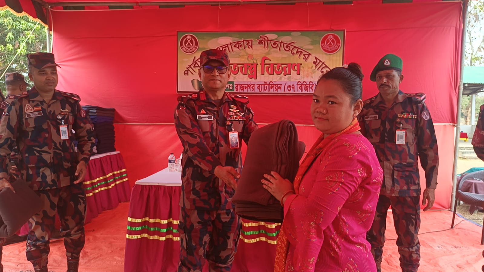 শক্ত হাতে সীমান্ত রক্ষা ও সন্ত্রাস দমন, নরম হৃদয়ে মানবতা, এই স্লোগানকে সামনে রেখে বিজিবি রাজনগর জোন বর্ডার গার্ড বাংলাদেশ (বিজিবি) তাদের মানবিক ও জনকল্যাণমূলক কার্যক্রমের অংশ হিসেবে পার্বত্য এলাকার শীতার্ত, গরিব ও দুস্থ মানুষের মাঝে শীতবস্ত্র বিতরণ করা হয়েছে।