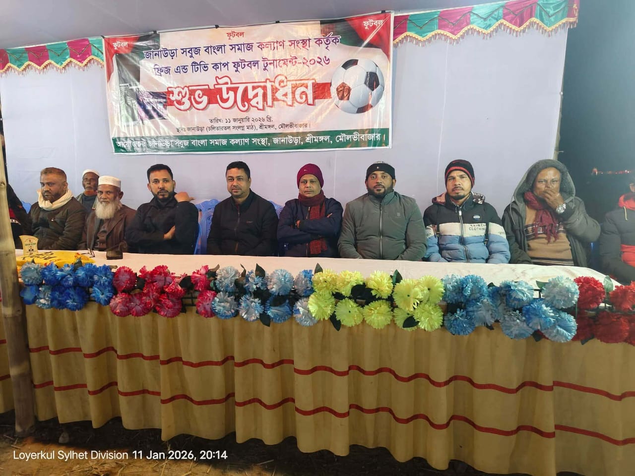 মৌলভীবাজারের শ্রীমঙ্গল উপজেলার জানাউড়া সবুজ বাংলা সমাজ কল্যাণ সংস্থার উদ্যোগে ফ্রীজ ও টিভি কাপ ফুটবল টুর্নামেন্টের উদ্বোধন করা হয়।